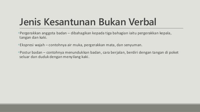 Bab 3 bentuk dan jenis kesantunan. Kali ini saya akan menerangkan bentuk dan jenis kesantunan. Ciri kesantunan berbahasa dapat dilihat pada jenis kalimat dan strukturnya. Selain itu, timbang rasa yang kita berikan kepada orang yang mendengar pertuturan kita seperti bahasa yang kita gunakan untuk menolak permintaan seseorang. Kesantunan verbal pengenalan ● yang kurik itu kendi,yang merah itu saga.yang baik itu budi,yang indah itu bahasa. ●menurut amat juhari moain(1992),kesantunan berbahasa adalah kesopanan dan kehalusan dalam menggunakan bahasa. Selain berdasarkan jenisnya, kita juga bisa bedakan kertas berdasarkan ukuranya dan kegunaanya. Kesantunan verbal merujuk kepada percakapan, lisan dan pertuturan dengan bahasa yang beradab. Isu pengajaran dan pembelajaran sains dan matematik dalam bahasa inggeris (ppsmi). Teori kesantunan berbahasa menurut brown dan levinson berkisar pada nosi muka (face). Contohnya dalam masyarakat melayu mesti menggunakan kata sapaan yang betul, gaya bahasa yang tepat, pemilihan kata dan ayat yang sesuai dengan konteks. Kesantunan bahasa bererti kesopanan dan kehalusan dalam menggunakan bahasa ketika berkomunikasi sama ada melalui lisan atau tulisan kepada orang yang dihormati, orang yang setaraf dengan kita atau orang yang lebih rendah kedudukan daripada kita. Lakoff (1975) mendefinisikan kesantunan sebagai perlakuan yang. ⇨kesopanan dan kehalusan ketika menggunakan bahasa, baik dalam bentuk lisan mahupun dalam bentuk tulisan.