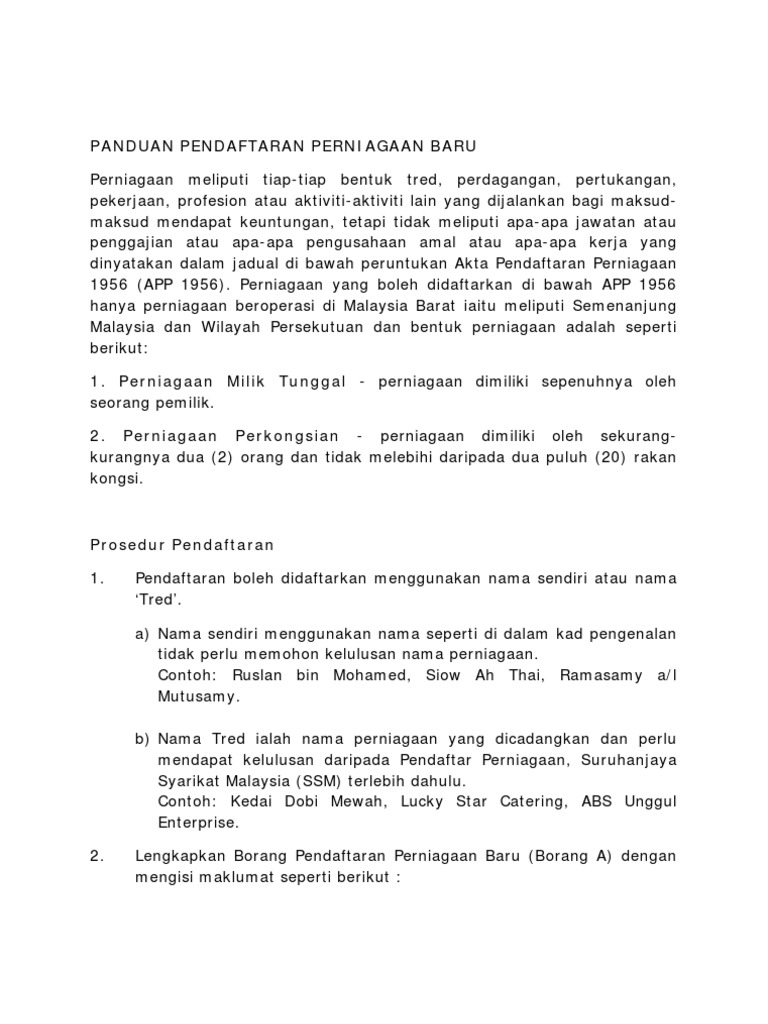 Nama 'tred' adalah nama perniagaan yang dicadangkan serta perlu mendapatkan kelulusan daripada pendaftar perniagaan, ssm terlebih dahulu. Ahmad izaney b abd kadir. Walaupun nama yang lucu, ladang ciptaan adalah perniagaan yang serius. Perniagaan perkongsian sama seperti milikan tunggal, cuma ia memiliki lebih 1 orang dan tidak lebih 20 orang pemilik. Sila cadangkan minimum 3 nama perniagaan. Atau contoh rancangan perniagaan ? Contohnya, ali dan abu berkongsi niaga. Perjanjian perkongsian perniagaan ini berlaku pada tanggal di mana surat ini ditandatangani oleh kedua pihak sehingga satu tempoh yang dipersetujui kelak. Pemohon mengisi dan mengemukakan borang p.na 1a untuk mendaftarkan perniagaan. Contoh rancangan perniagaan kandungan 1 pengenalan 2. Sekiranya perniagaan tidak mempunyai akaun atas nama perniagaan, akaun bank persendirian pemilik boleh digunakan sebagai contoh jadual ramalan/anggaran jualan Contoh keadaan perniagaan tang tidak beretika adalah seperti sesetengah penjual yang antaranya ialah nama perkongsian, lokasi perniagaan, jumlah serta nama pekongsi, kegiatan perniagaan yang dijalankan perniagaan perkongsian juga tertakluk di bawah akta pendaftaran perniagaan 1956. Tp3 melaksanakan pengiraan faedah atas.